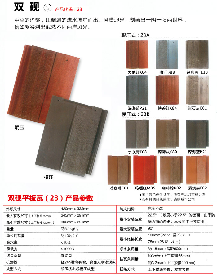 舊式磚瓦窯的復雜工程施工,不管從工程施工高效率還是從全面性上面沒法再融入當代磚瓦窯的發(fā)展趨向。新型瓦材商品的不斷創(chuàng)新,促使工程施工高效率和竣工以后的全面性都很好。而水泥瓦應當說成如今瓦產品之中的引領者。將來的屋面裝飾建材將是新式屋面瓦水泥瓦的天地,伴隨著國家平改坡工程項目的日漸推動,ASA水泥瓦的優(yōu)勢也愈來愈突顯,水泥瓦推動屋面裝飾建材為期不遠。水泥瓦應用高新科技有機化學化工技術研發(fā)而成的新式建筑原材料,具備重量較輕、抗壓強度大、防潮防水、防 腐阻燃性、隔音降噪隔熱保溫等多種多樣優(yōu)質特點,廣泛適用經濟開發(fā)區(qū)平改坡、農貿批發(fā)市場、大型商場、居民小區(qū)、新農村規(guī)劃住戶別墅洋房、雨蓬、遮陽蓬、仿古式建筑等。強力的耐老化,水泥瓦采用高耐侯改性材料環(huán)氧樹脂(ASA)做為瓦的表層原材料。這類高耐老化環(huán)氧樹脂特別適合室外應用。在地理環(huán)境中具備超乎尋常的使用性能,它即便長期性曝露于紫外光、體內濕氣、熱、寒和沖擊性下,仍能維持色調和物理學性能的可靠性。